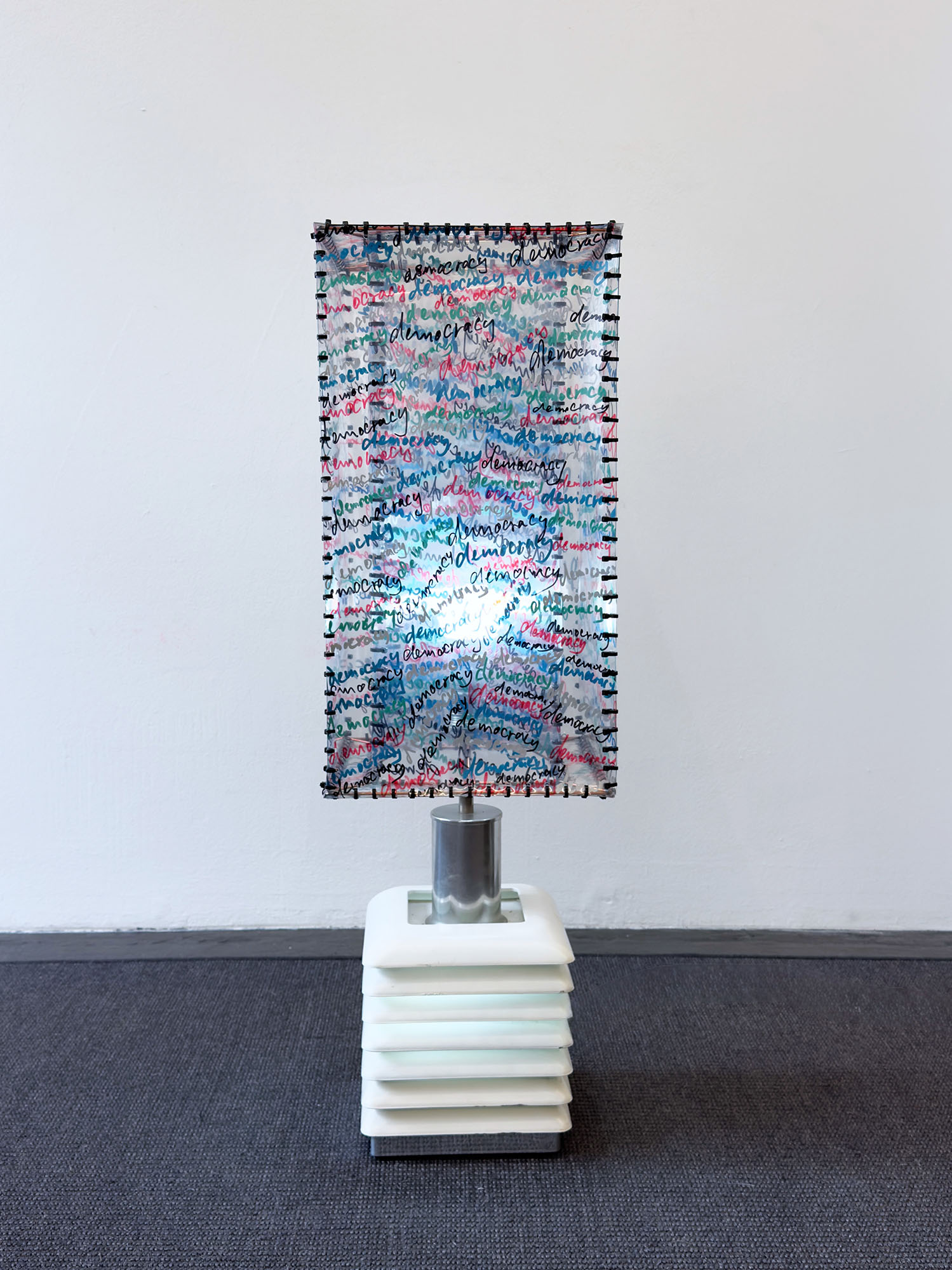 The works of Claus Föttinger are to be read as „social sculptures“, which should not be looked at alone, but explicitly put into use, so that they fulfill their function as works of art. His light objects take the form of lamps, tables, benches or bars, neverthless keeping their status as autonomous sculptures with ease. This happens quite in the wake of a concept of „social sculpture“, as Joseph Beuys has coined the term, according to which the artwork emerges from the interaction of artist and recipient. The work exists as a place of encounter and communication and should be used for social interactions. The walls and furniture of his works function as carriers of image programs, which, in conjunction with all the elements of a work, retain their precise iconographic meaning. His groups of works contain pictorial worlds that deal with pop culture, film, politics, the German post-war history or the perceptible changes in public urban space, from which one can read off the current political and social developments. His work is driven by a deep interest in the human condition and an unsatiable curiosity in researching this condition and creating resp. finding the images to express it.