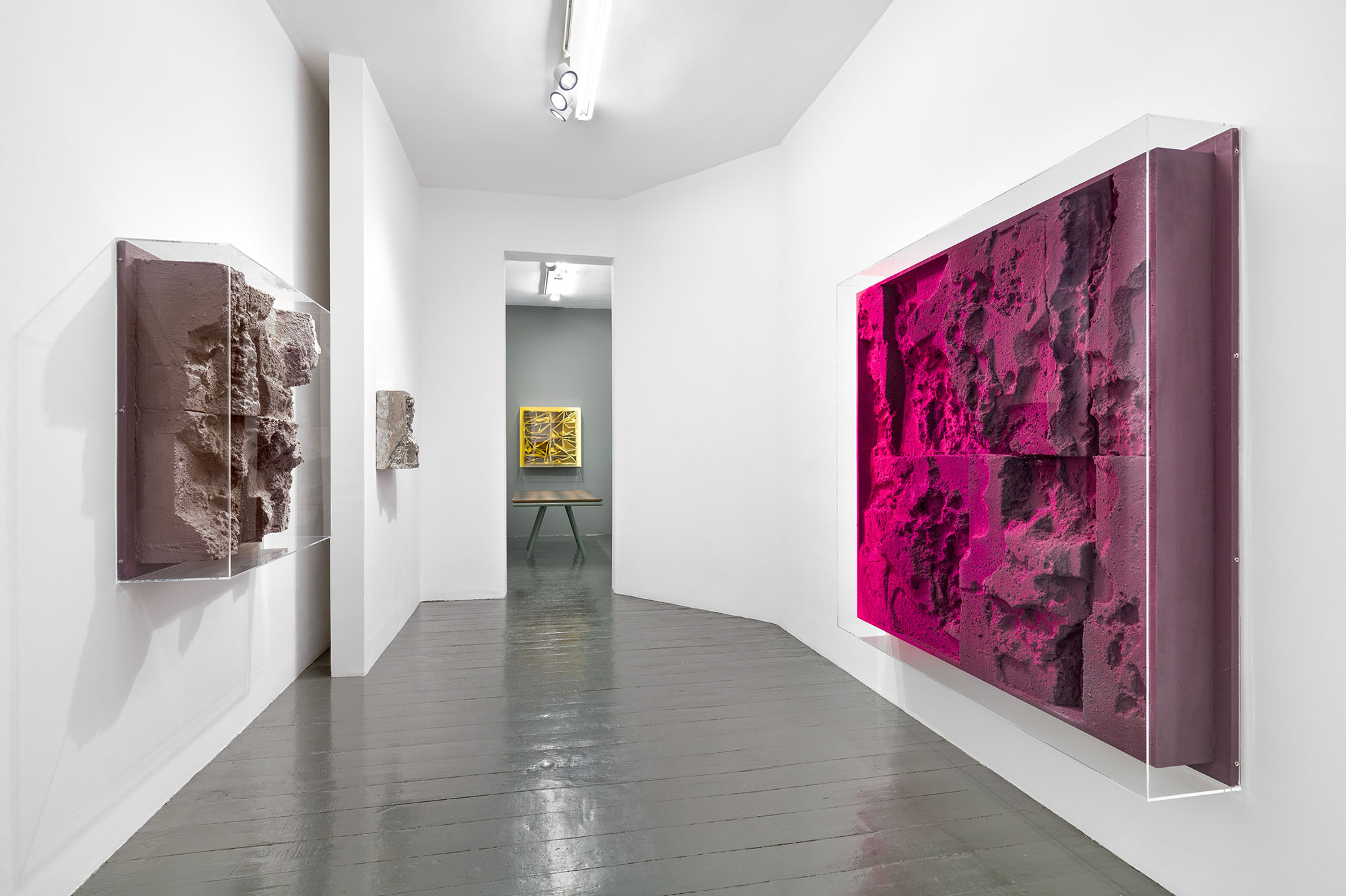 spray paint, polymer plaster on polystyrene, certified non-wood,