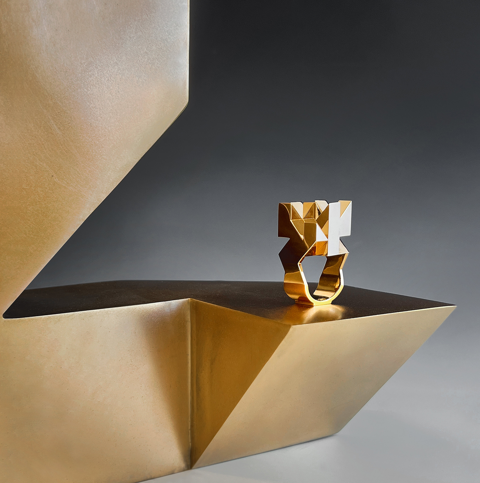 ‘caRRieR’ – the Jan Albers ring in 10 unique pieces is the artist’s first jewellery sculpture. Made of gold, the ring references Albers‘ characteristic spatial reliefs. Its geometric complexity and sculptural presence clearly locate it in the artist’s language.